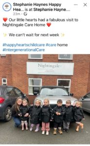 “We are so proud to be working with Happy Hearts Nursery for this brilliant initiative. Our first session was a resounding success. Seeing smiles on the faces of both our residents and the children is very special. The children bring so much joy and energy into the home!”